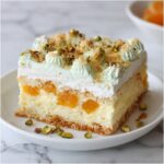 - Garnish and Chill: Sprinkle the top with chopped pistachios and toasted coconut for added flavor and texture. Chill the cake in the refrigerator for at least 1 hour before slicing and serving to enhance flavor and texture.