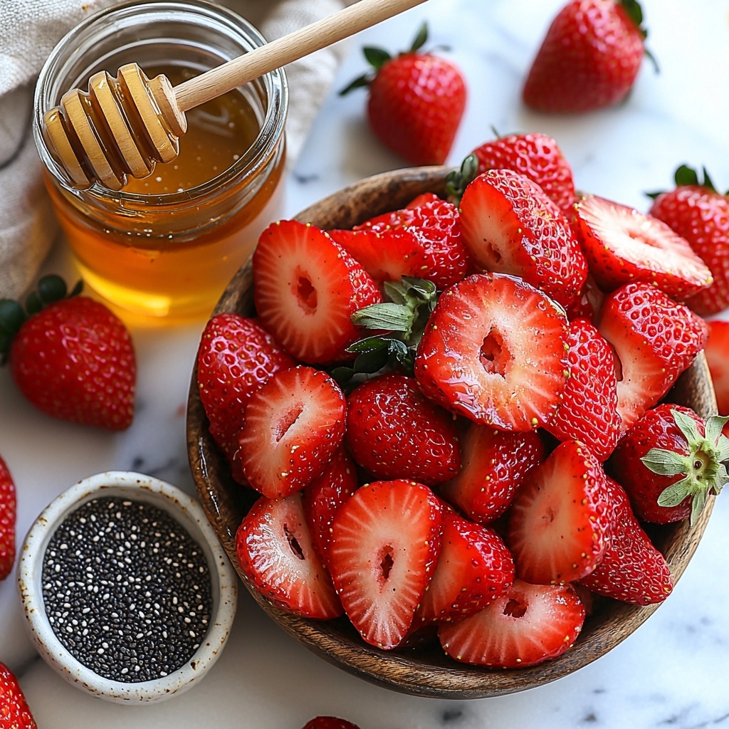 Start by heating a medium saucepan over medium heat and tossing in your sliced strawberries with the honey. The gentle heat coax the juicy sweetness from the berries, mingling perfectly with the honey’s natural sugars to create a delicious base.