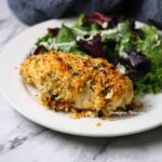 5. Bake the Chicken: Place the baking dish on the center oven rack and bake for 25 to 30 minutes, or until the chicken is cooked through and the topping is golden brown. If the crumbs brown too fast, tent the dish loosely with foil for the remainder of baking. The chicken is done when its internal temperature reaches 165°F (74°C).