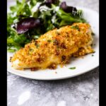 This Easy Baked Caesar Chicken is a flavorful and simple weeknight dinner featuring tender chicken breasts topped with creamy Caesar dressing, melted provolone cheese, and crispy Caesar-style crouton crumbs. Baked to golden perfection, this dish combines classic Caesar salad flavors with comforting baked chicken in under 35 minutes.