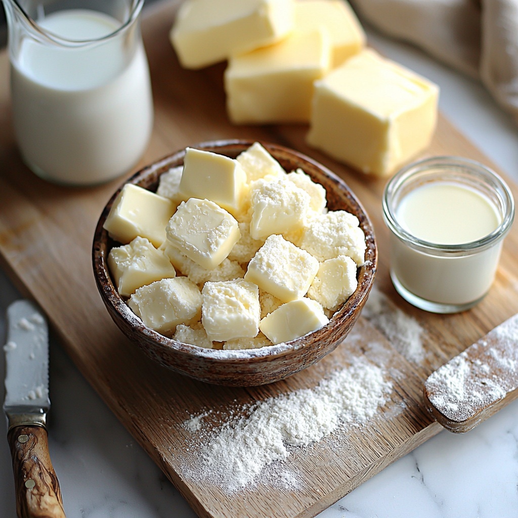 Use the spoon-and-level method to measure the flour carefully—this avoids packing it down too much and keeps your biscuits tender. Placing the flour in a large bowl sets the stage for blending with the butter.