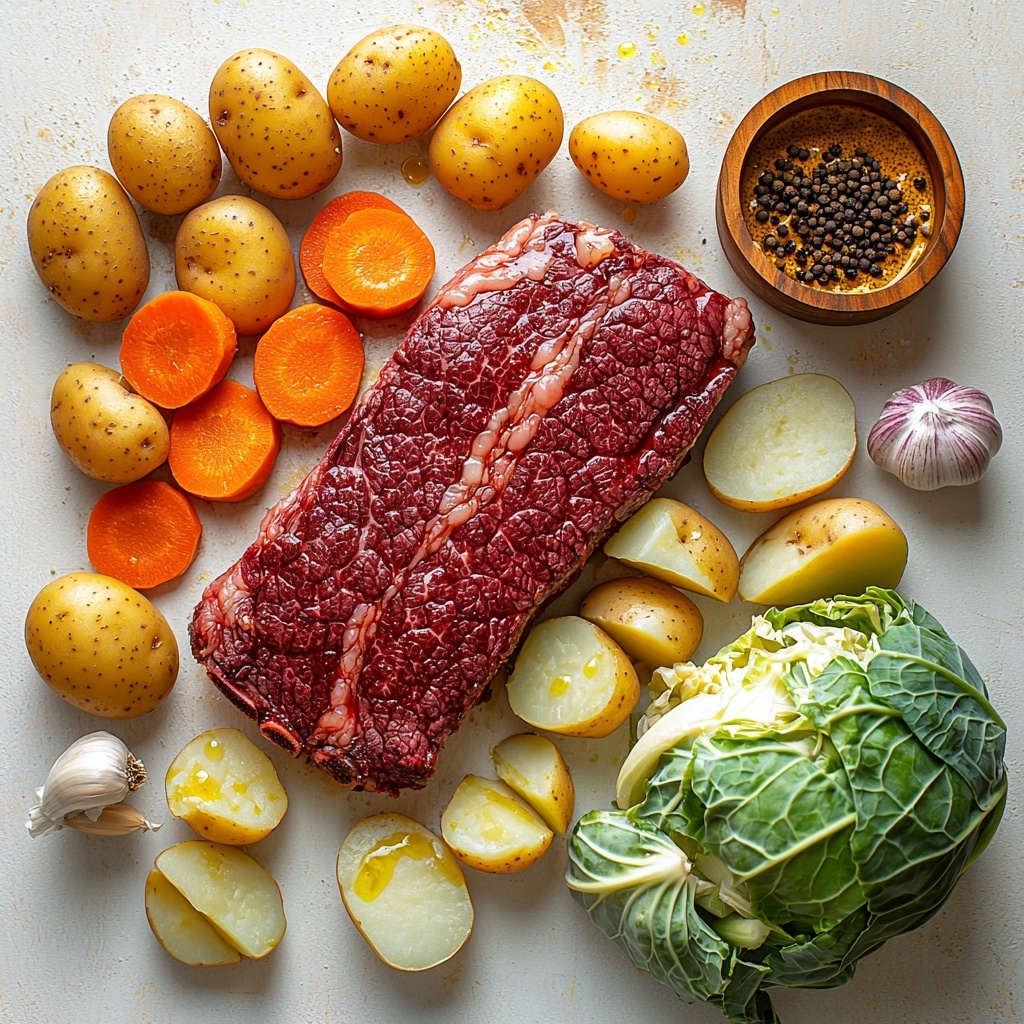 - 2½-3 lb corned beef brisket (flat cut): The star of the show, tender and flavorful, perfect for slow roasting.