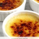 9. Caramelize sugar topping: Just before serving, sprinkle a thin layer of brown sugar on each custard and caramelize it with a kitchen torch or briefly under the broiler until a crisp golden crust forms.