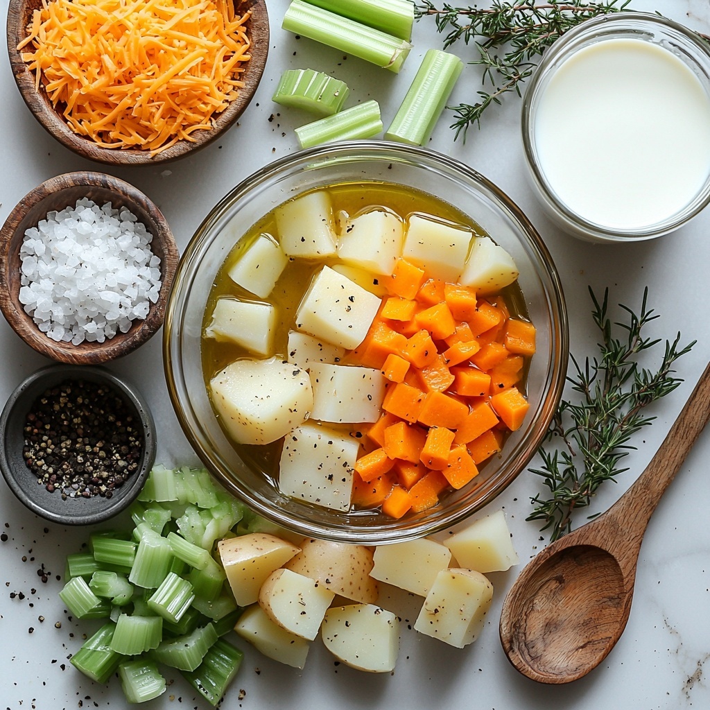 - Celery, diced: Delivers subtle earthiness and a little crunch that balances the softness of the potatoes.