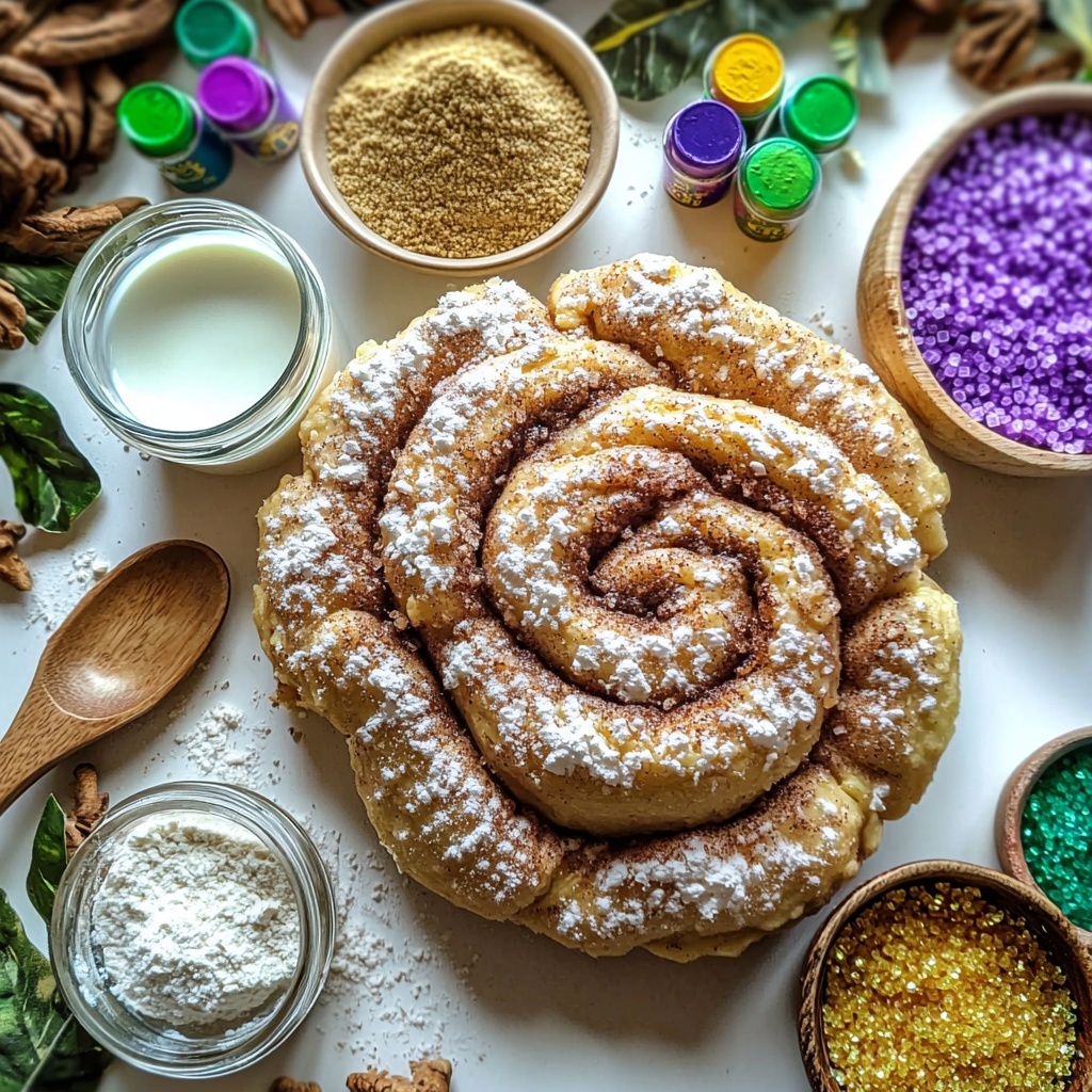 The beauty of this Easy Mardi Gras Cinnamon Rolls with Two-Ingredient Dough Recipe is how minimal but thoughtfully chosen the ingredients are. Each plays a crucial role—flour and yogurt create the tender dough, brown sugar and cinnamon sprinkle a warm sweetness, and the butter and icing bring richness and that irresistible finishing touch.