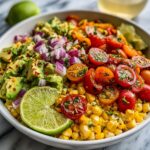 Start by dicing the avocados into medium-sized cubes and halving the cherry tomatoes so their juicy insides add extra flavor to every spoonful. Finely chop the red onion and cilantro; these smaller pieces will disperse their punch evenly throughout the salad. If you’re using frozen or canned corn, make sure it’s completely thawed or drained to keep the salad crisp rather than soggy.