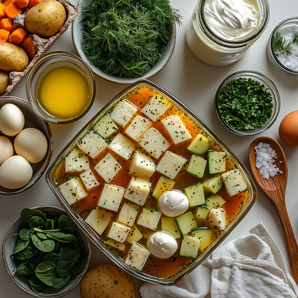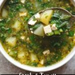 Green Borscht is a vibrant and nourishing Eastern European soup featuring a medley of fresh vegetables like spinach, zucchini, and potatoes simmered in a flavorful chicken or vegetable broth. Enhanced with lemon juice for brightness and finished with protein-rich hard-boiled eggs and fresh herbs, this comforting soup offers a perfect balance of hearty and light flavors. Served with a dollop of sour cream, it’s an ideal nutritious meal for any season.