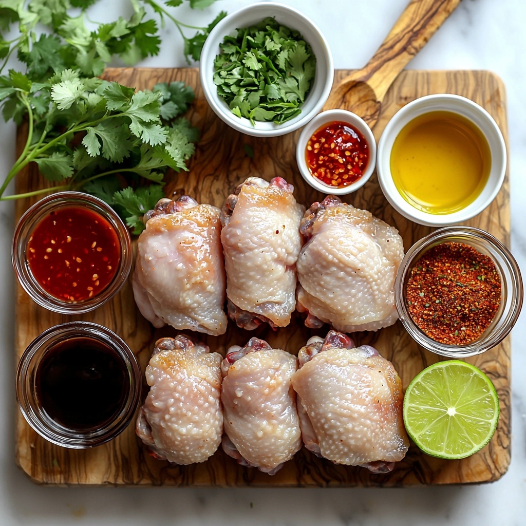 Don’t let the short ingredient list fool you—each component here plays a key role in building layers of flavor and texture that truly make the dish sing. From the tender chicken thighs to the tangy lime juice and fiery sriracha, every element is essential for that authentic Thai-inspired taste.