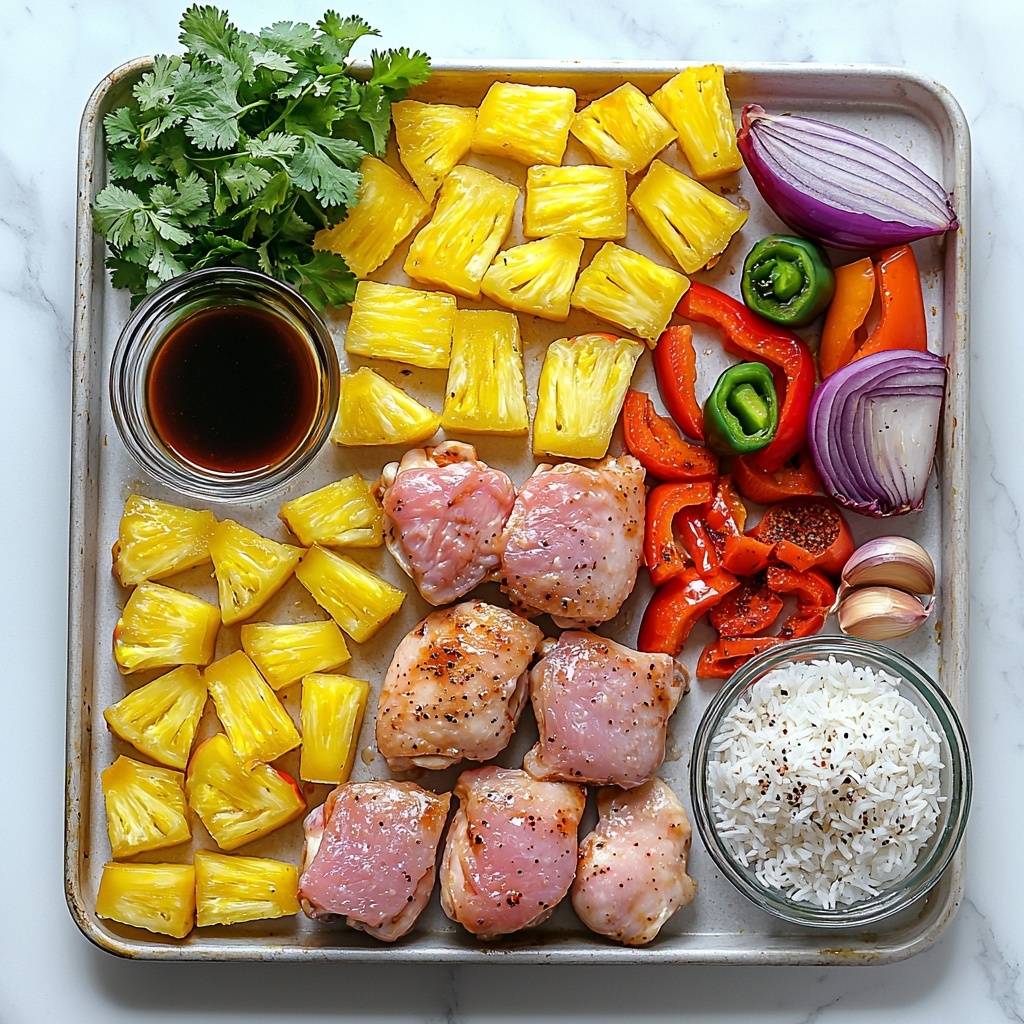 These simple yet carefully chosen ingredients are the heart and soul of the Hawaiian Chicken Sheet Pan Recipe. Each one plays a crucial role in creating the perfect balance of flavor, texture, and vibrant color that makes this dish so memorable.