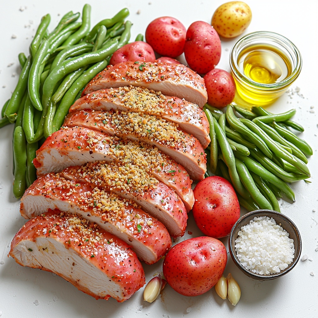 The beauty of this Healthy Chicken Parmesan with Vegetables Recipe lies in its simplicity. Each ingredient plays an essential role: from juicy chicken breasts providing protein, to red potatoes adding earthy heartiness, and fresh green beans bringing a pop of bright color and crisp texture. The parmesan and Italian breadcrumbs create that irresistible golden crust, while garlic and olive oil tie all the flavors together.