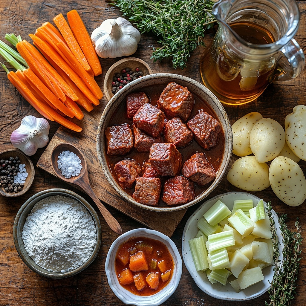 These ingredients are wonderfully straightforward, yet each one plays a vital role in crafting the depth, texture, and vibrant color of your stew. From the juicy beef to the aromatic herbs and fresh vegetables, every element shines through.