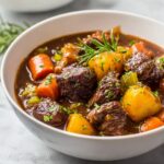 This Hearty Dutch Oven Beef Stew Recipe pairs beautifully with crusty bread to soak up all that luscious gravy or buttery mashed potatoes for an even heartier experience. A crisp green salad on the side adds a fresh contrast, balancing the richness with bright, crisp flavors.