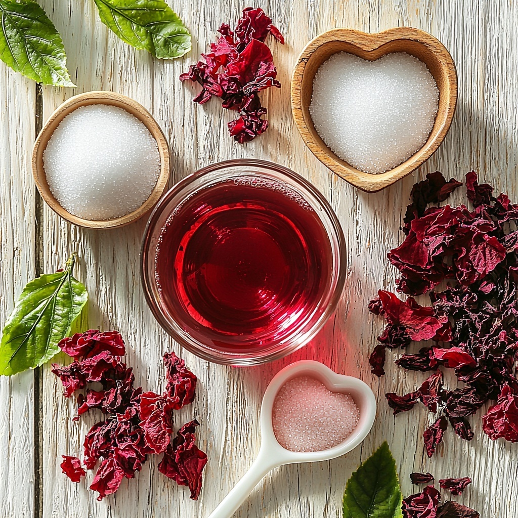 The secret to these lovely Hibiscus Heart Gelatin Cups lies in a handful of simple, quality ingredients. Each one brings something essential to the table—from the floral punch of hibiscus to the sweet balance of sugar, and the magical setting power of gelatin. Let’s dive into what you’ll need to create this enchanting dessert: