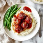 8. Serve: Serve these tender BBQ meatballs with mashed potatoes and green beans for a comforting, hearty meal. Enjoy the rich flavors and juicy texture!