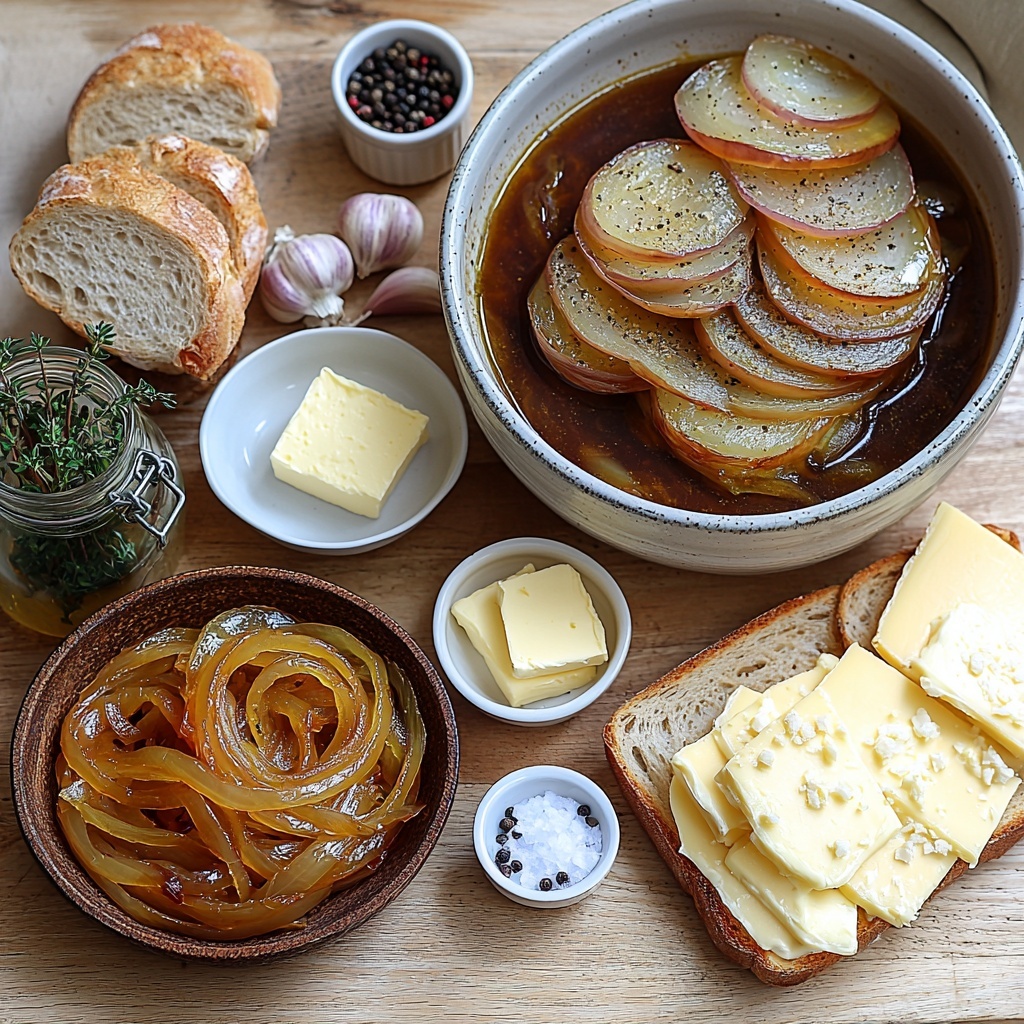 These ingredients are wonderfully straightforward but absolutely essential to achieving that perfect balance of sweetness, savoriness, and texture in your Homemade French Onion Soup Recipe. Each component plays a crucial role in building layers of flavor that will make every spoonful memorable.