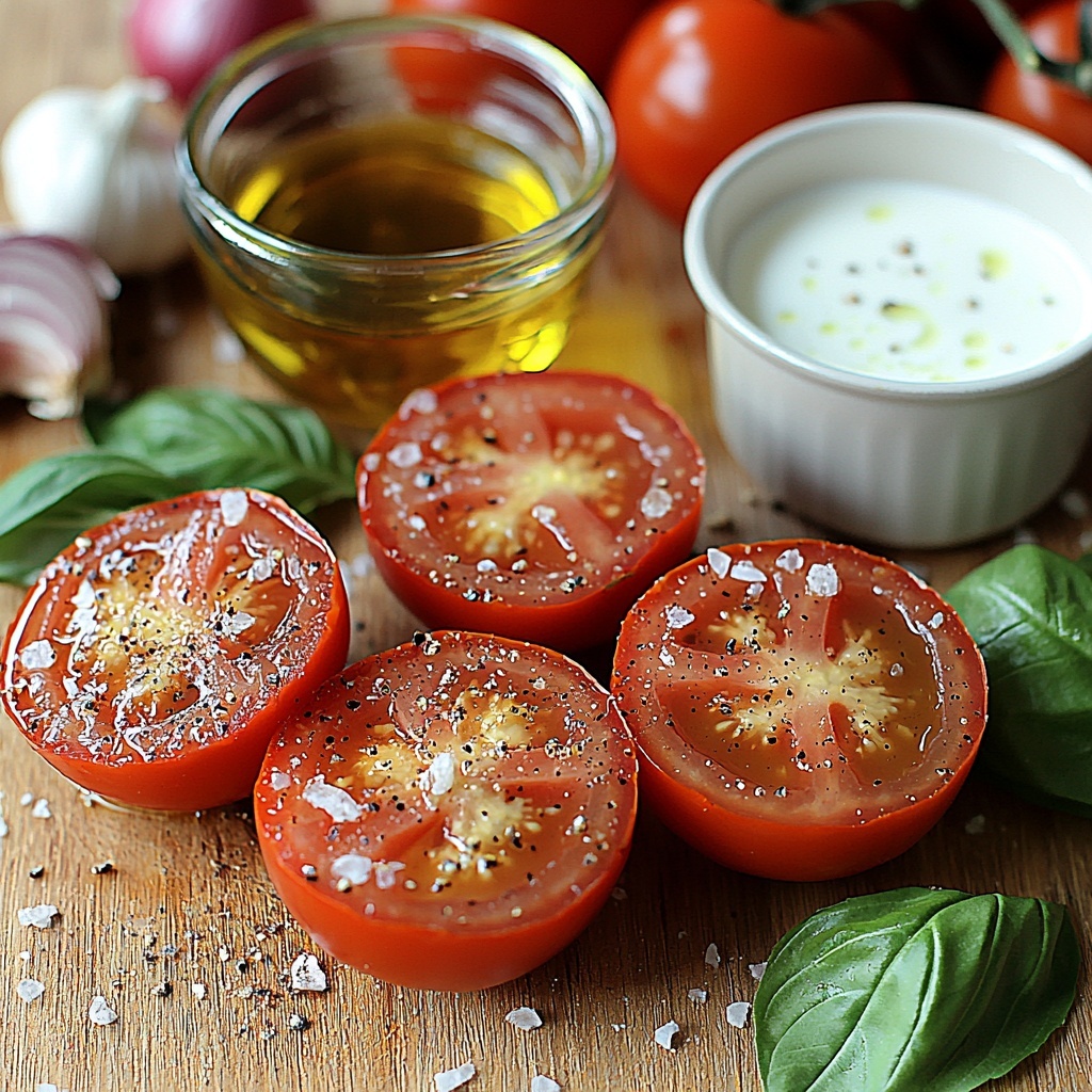 - Roast the Tomatoes: Preheat your oven to 400°F (200°C). Arrange the halved tomatoes on a baking sheet, drizzle with olive oil, and roast for 25-30 minutes until soft and slightly caramelized to enhance their natural sweetness.