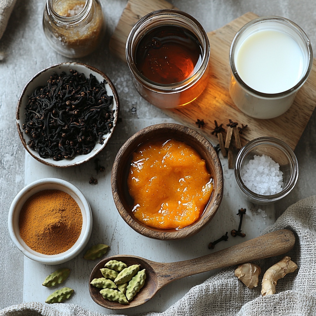 To make this Iced Pumpkin Spice Chai Latte Recipe shine, you only need a handful of simple yet essential ingredients. Each one plays a crucial role, from building the spicy chai base to enhancing the creamy, sweet pumpkin notes for that perfect chilled treat.
