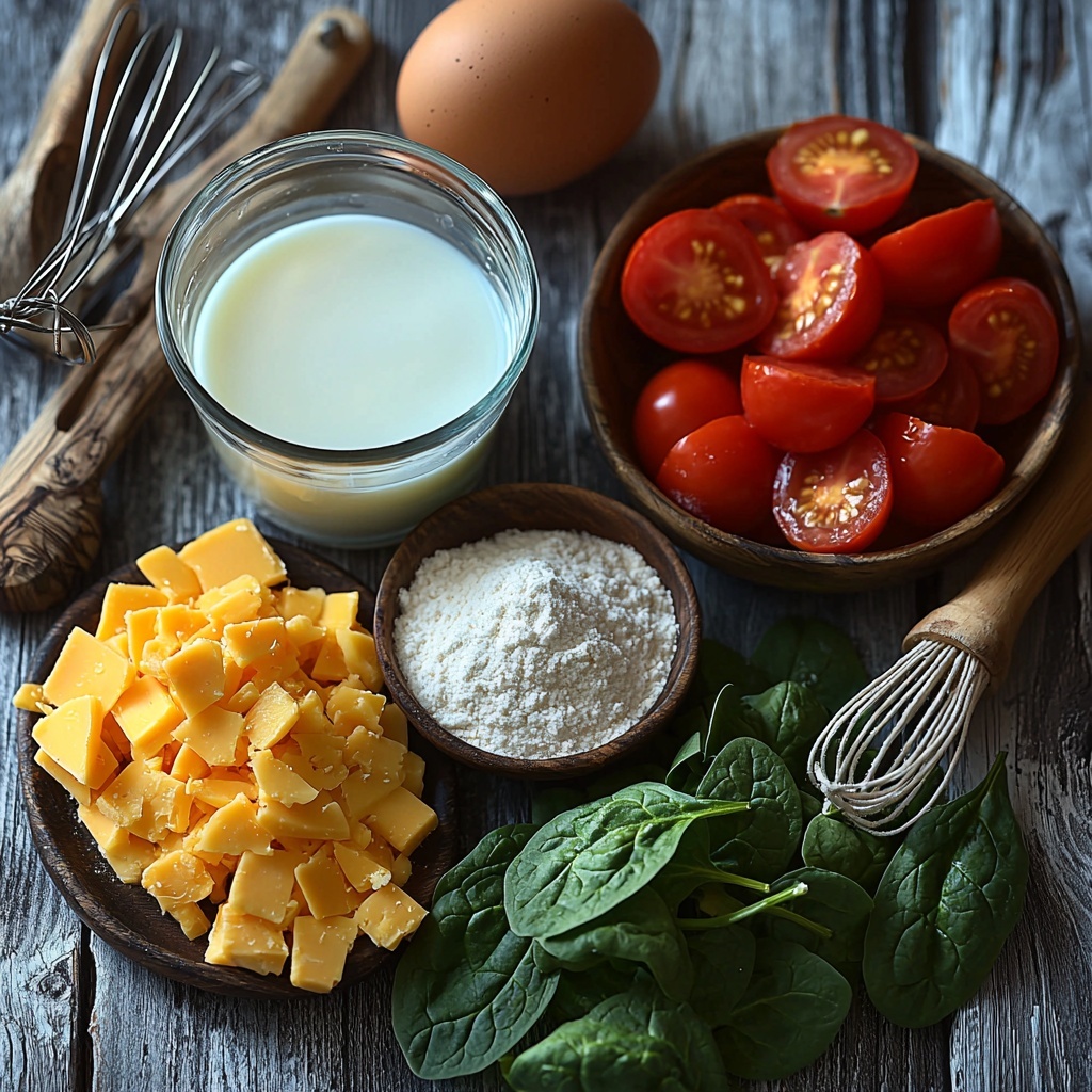Getting ready to whip up these savory crepes starts with a handful of simple, wholesome ingredients that each play an essential role. From the creamy milk that smooths the batter to the fresh, vibrant spinach that adds color and nutrition, every component is straightforward but packs a flavorful punch.