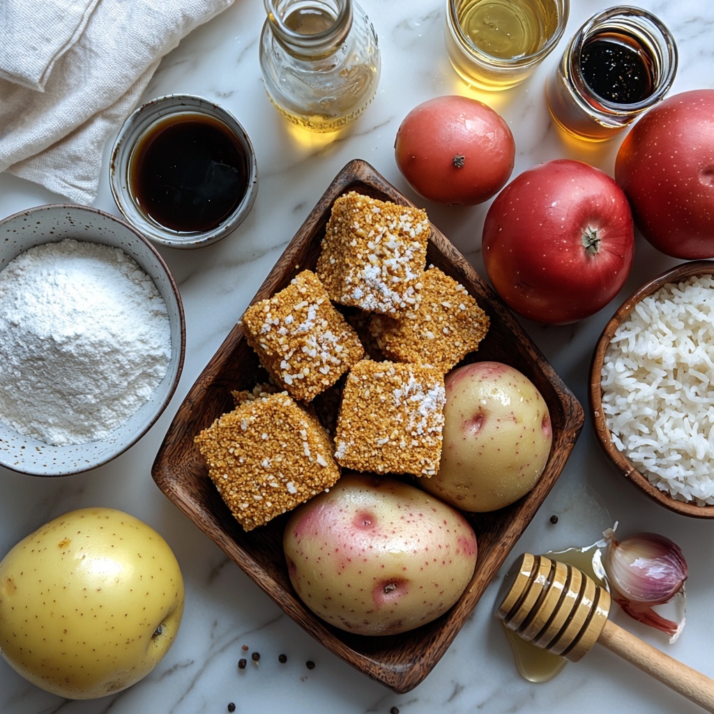 In the same skillet, add a bit of olive oil and gently sauté diced onions and minced garlic until translucent and fragrant. Toss in diced carrots and potatoes, cooking briefly until they start softening. Pour in the chicken stock, water, soy sauce, honey, and grated apple. Let this simmer until the vegetables are tender and the flavors meld beautifully.