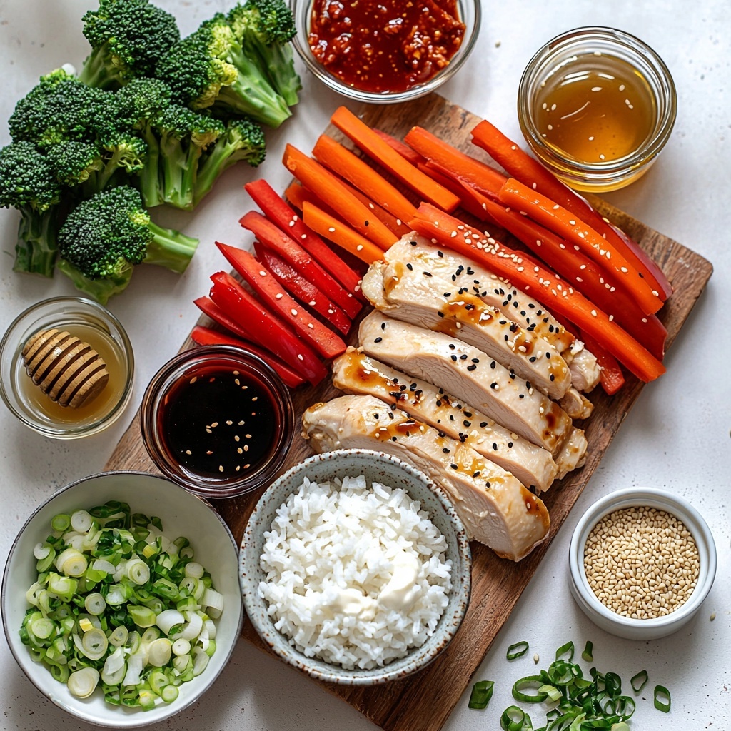 The magic behind this Korean BBQ Chicken Bowls with Gochujang Cream Sauce Recipe lies in its simple yet thoughtfully picked ingredients. Each one plays an important role, contributing layers of taste, from savory umami notes to sweet and spicy hints, along with satisfying textures and vibrant colors that make this bowl pop visually and on your palate.