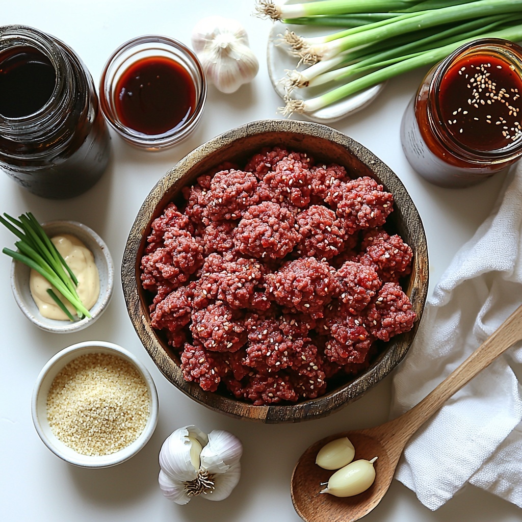 Gathering the right ingredients is the first step to nailing this Korean BBQ Meatballs with Spicy Mayo Dip Recipe. Each component plays a crucial role—from the meat’s juiciness to the perfect tangy, spicy glaze and dip that make this dish so unforgettable.