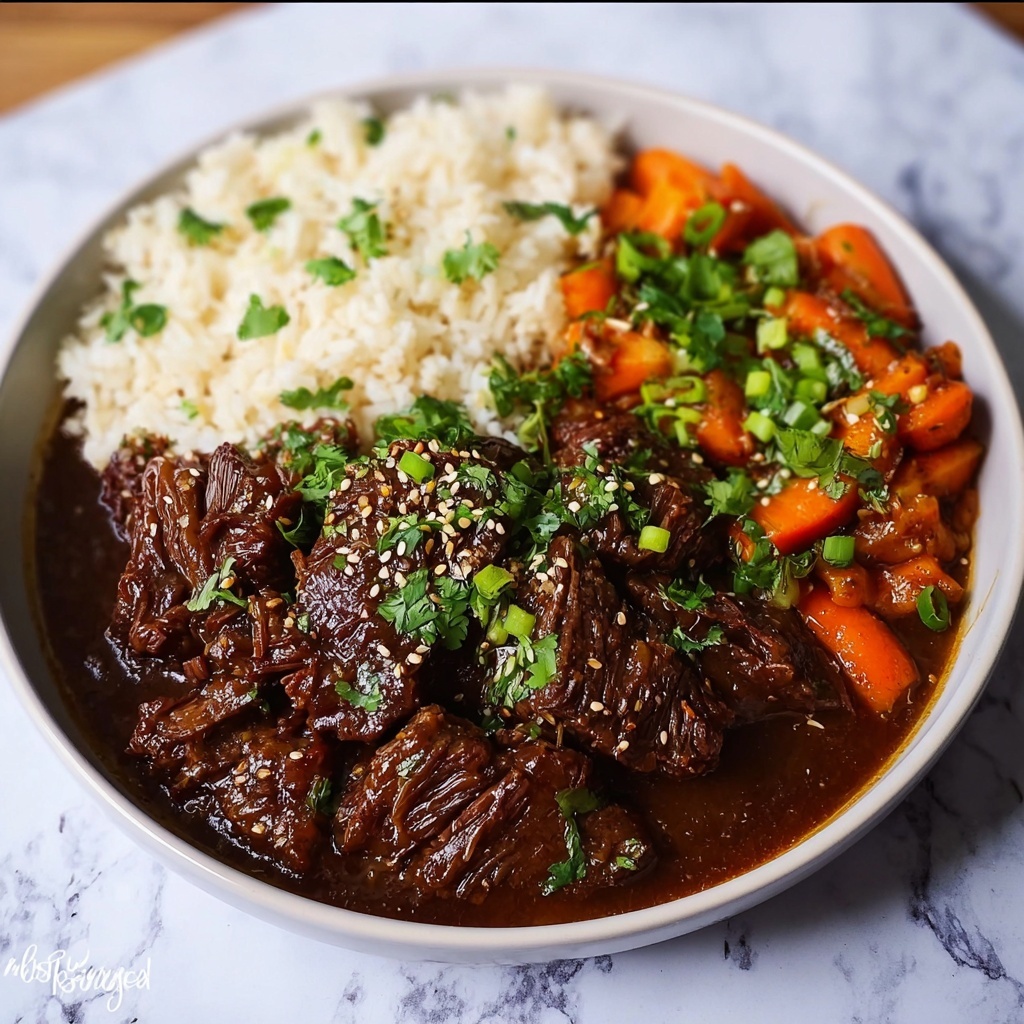 The best way to finish this Korean Style Pot Roast Recipe is with a sprinkle of sliced green onions and toasted sesame seeds. These simple garnishes add freshness, a touch of crunch, and a lovely pop of color that makes every serving look as good as it tastes.