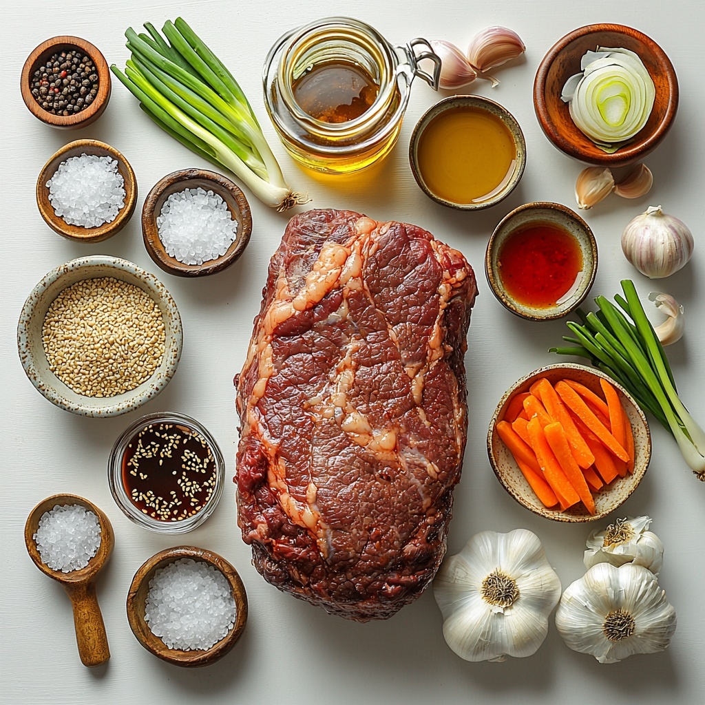 All the ingredients in this Korean Style Pot Roast Recipe are simple but essential, each one playing a key role in crafting that complex flavor profile and giving the dish its beautiful texture and color.
