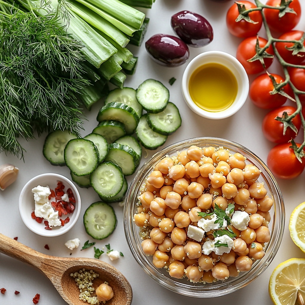 The beauty of this recipe lies in its simplicity and freshness. Each ingredient plays a vital role, from the nutty quinoa providing a hearty base to the fresh herbs infusing crisp, aromatic notes. The lemon juice and zest add a lively brightness, while the chickpeas bring a lovely creamy texture and protein punch. Here’s what you’ll gather for this delightful dish: