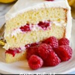 Place one cooled cake layer on your serving plate and spread a generous layer of frosting on top. Add the next cake layer and cover the entire cake with the remaining frosting. Finish by garnishing with fresh raspberries and pretty lemon slices for that perfect finishing touch. If you like, refrigerate the assembled cake for 20-30 minutes to let the frosting set well before serving.