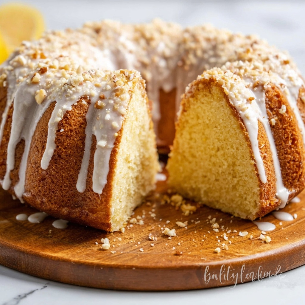 - Glaze and Garnish: Drizzle the lemon glaze evenly over the cake, letting it drip down the sides. Sprinkle toasted slivered almonds on top. Allow the glaze to set before slicing and serving.