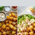 Start by preheating your oven to 220°C (425°F). Toss the diced potatoes with extra-virgin olive oil, sweet paprika, onion powder, sea salt, and cracked black pepper. Spread them evenly on a baking tray lined with parchment paper to ensure maximum crispness. Bake for 40 to 45 minutes, flipping halfway through, until golden and irresistibly crispy. If you prefer, you can air-fry the potatoes at 200°C (400°F) for 20 to 25 minutes, shaking the basket halfway to get that perfect crunch.