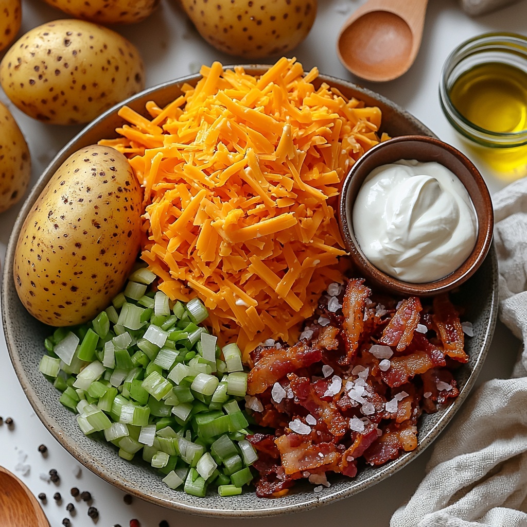 Gathering the right ingredients is key to making the perfect loaded potato skins. Each one plays an important role: the crispy potato skins give texture, sharp cheddar adds intense flavor, and bacon brings smoky goodness to every bite.
