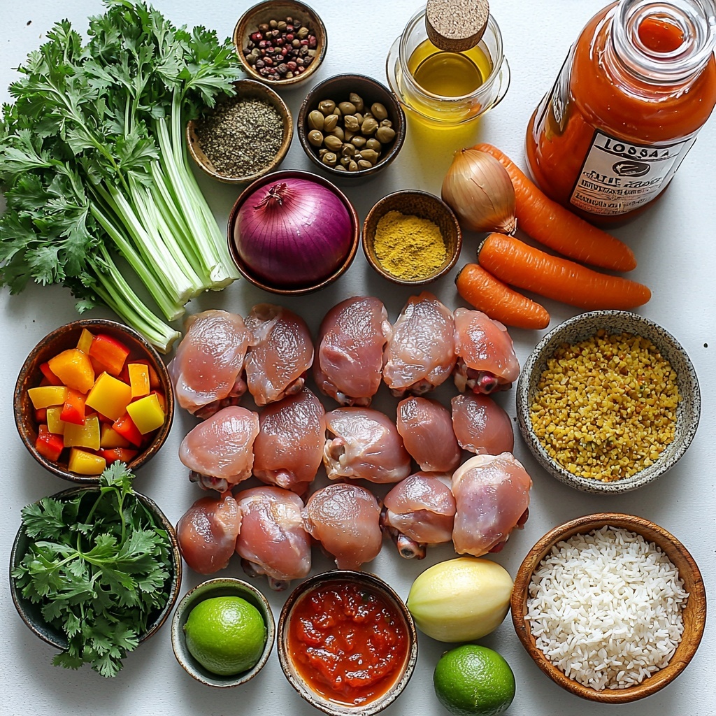 The beauty of Locrio de Pollo lies in its straightforward, yet essential ingredients. Each item adds a unique layer that builds up the dish’s incredible depth, texture, and color. From fresh herbs to spices, and the perfect rice-to-chicken ratio, you’re about to experience a symphony of flavors.
