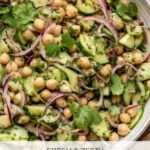 To the bowl with the pickled red onions, add the rinsed chickpeas, cannellini beans, drained cucumbers, and remaining cilantro. Pour the dressing over everything and toss gently but thoroughly so every bite is generously coated.