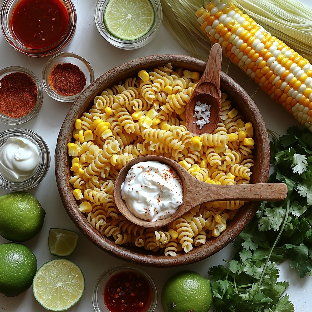 The magic of this Mexican Street Corn Pasta Salad Recipe lies in its simple, approachable ingredients. Each one plays a crucial role in creating layers of flavor, from the tender pasta that serves as the perfect base to the fresh cilantro and tangy lime juice that brighten every bite. The spices bring warmth and a subtle kick, while cotija cheese adds that signature salty, crumbly goodness. This dish is as much about balancing textures as it is flavors, so having each ingredient at hand is essential.
