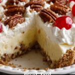 - Garnish the Pie: Decorate the top with whipped cream, chopped pecans, maraschino cherries, and toasted coconut if desired for added texture and visual appeal.