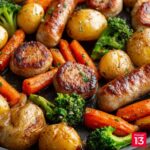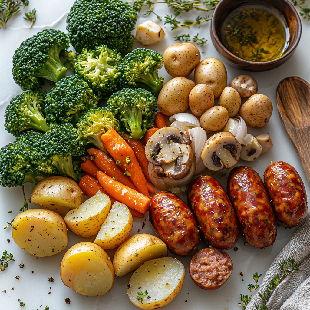 This easy and flavorful One Pan Baked Italian Sausage and Veggies recipe combines tender roasted baby potatoes, vibrant broccoli, mushrooms, onions, and carrots with savory sweet Italian sausage slices. Roasted together in the oven with a blend of classic Italian seasonings and olive oil, this wholesome sheet pan meal delivers a perfect balance of protein and vegetables with minimal cleanup, making it ideal for busy weeknights or casual dinners.
