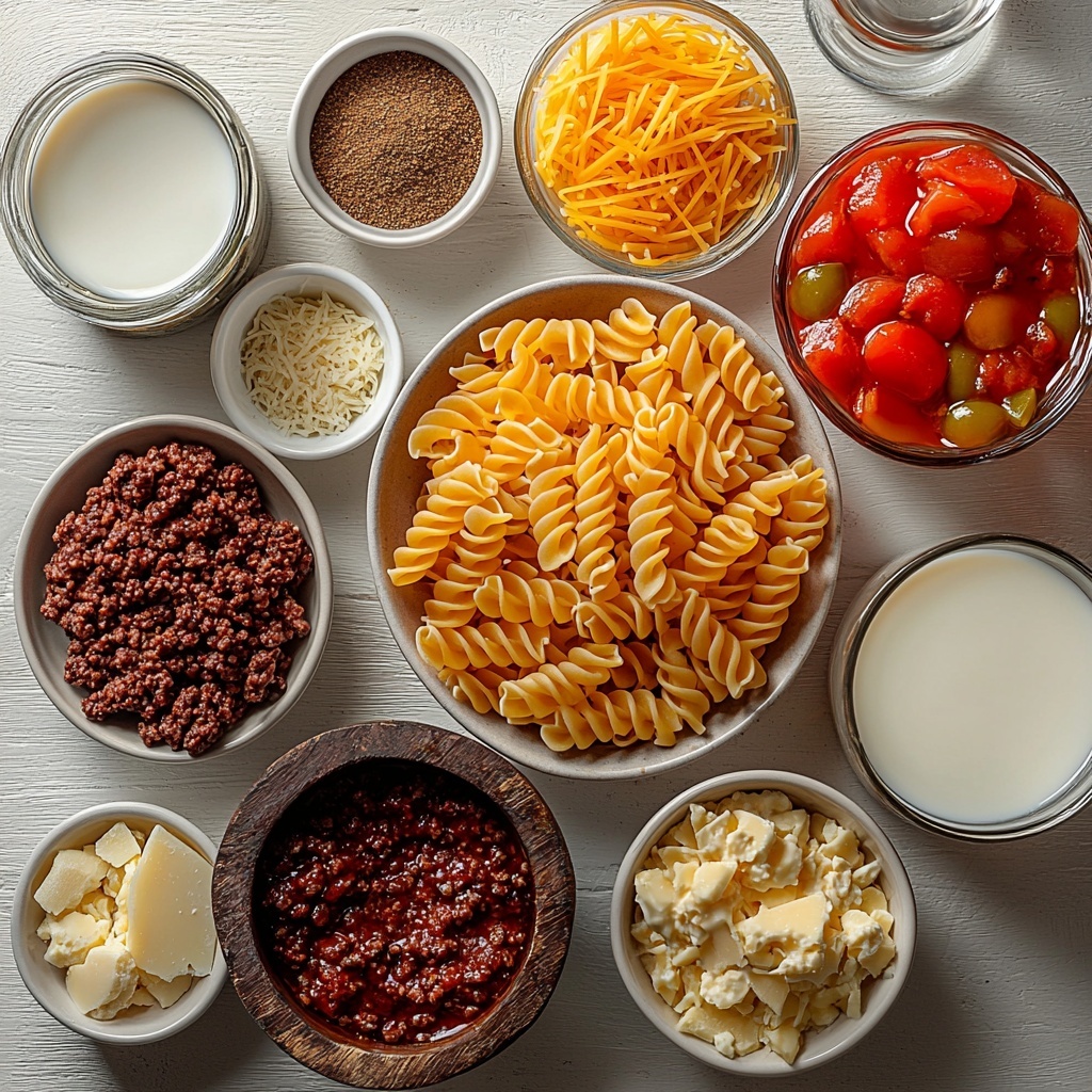 These ingredients are wonderfully simple yet each plays a key role in building the depth, texture, and vibrant flavors that make this One-Pot Cheesy Taco Pasta Recipe so irresistible. From aromatic spices to creamy cheeses and hearty pasta, every element works in harmony to create an unforgettable dish.