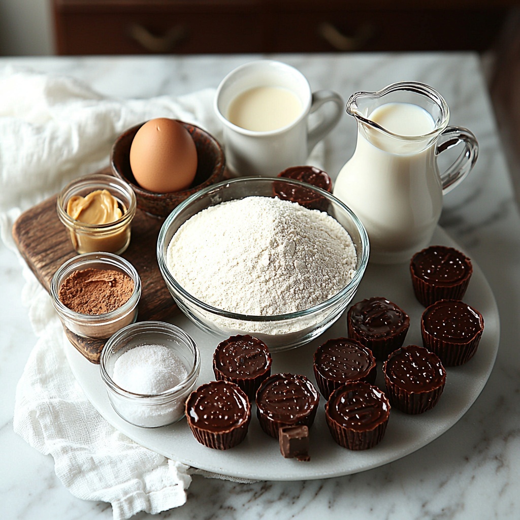 This Peanut Butter Cup Cupcakes Recipe calls for simple, pantry-friendly ingredients that come together to create magnificent textures and flavors. Each item plays its part, whether it’s the cocoa powder adding depth, the peanut butter enhancing richness, or the buttermilk ensuring a tender crumb.