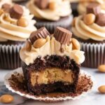Delight in these rich and moist Peanut Butter Cup Cupcakes featuring a decadent chocolate cake with a gooey peanut butter cup surprise in the center, topped with a creamy peanut butter frosting. Perfect for chocolate and peanut butter lovers, these cupcakes combine intense flavors and a luscious texture that’s sure to impress at any gathering.