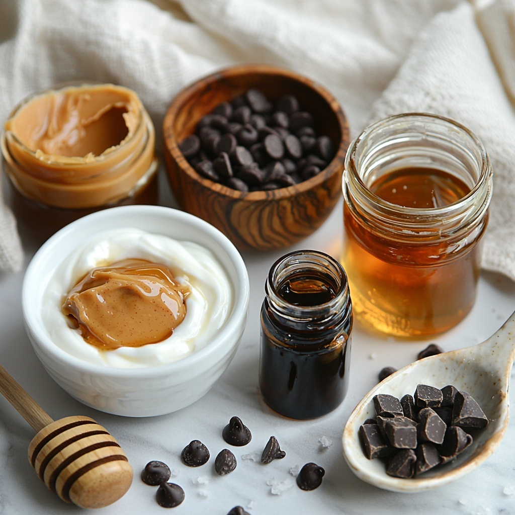 - Prepare the Mixture: In a medium bowl, combine the Greek yogurt, peanut butter, honey, vanilla extract, mini chocolate chips (if using), and a pinch of sea salt. Mix well to blend all the flavors.