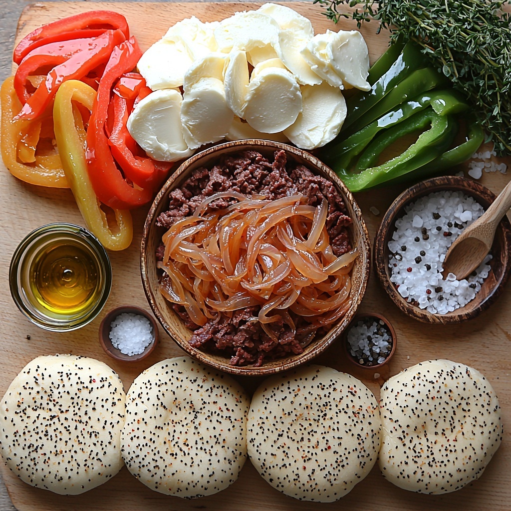 This Philly Cheese Steak Burgers Recipe is delightfully simple, relying on straightforward ingredients that elevate the dish with every mouthful. From the savory beef to the melty cheese and vibrant veggies, each component plays an essential role in crafting those classic Philly-inspired flavors and irresistible textures.