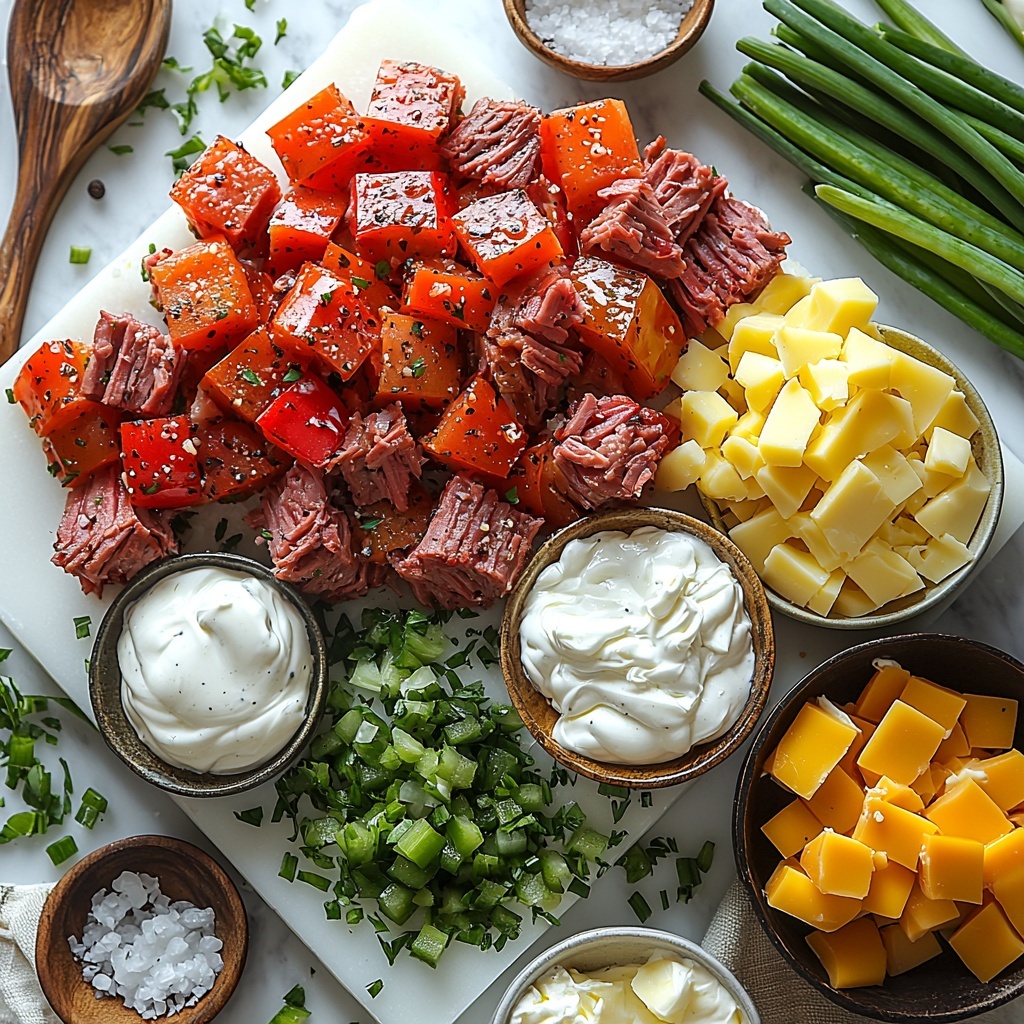 Putting together this Philly Cheesesteak Dip Recipe is wonderfully straightforward because every ingredient plays a key role in balancing flavor, texture, and that signature cheesesteak vibe. You’ll find the staple deli roast beef providing hearty savory meatiness, while the creamy cheeses add gooey richness, and the fresh veggies brighten it all up.
