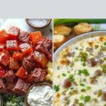This Philly Cheesesteak Dip is a creamy, cheesy appetizer inspired by the classic Philadelphia cheesesteak sandwich. Featuring tender roast beef, sautéed onions, and green bell peppers blended with a mix of creamy cheeses, this warm dip is perfect for parties or casual gatherings. Ready in just 30 minutes, it’s an easy, crowd-pleasing recipe served best with baguette slices, chips, or fresh veggies.