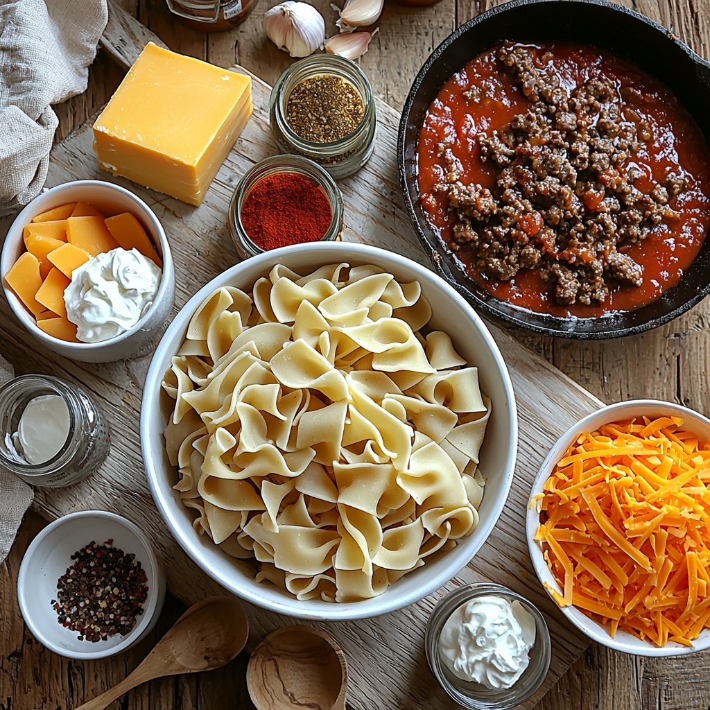 While the meat simmers, blend the softened cream cheese with sour cream until you get a smooth, creamy mixture. This combination gives the casserole its signature luscious richness and tang that contrasts beautifully with the savory meat sauce.