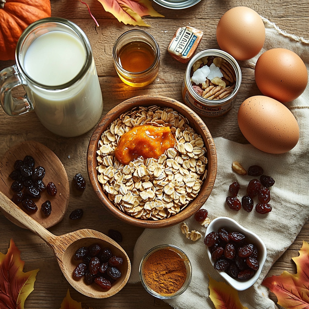 Gathering simple, wholesome ingredients is the secret to this dish’s delicious depth. Each element plays a vital role in building the rich texture, warming flavor, and vibrant color that make this Pumpkin Baked Oatmeal Recipe so irresistible.