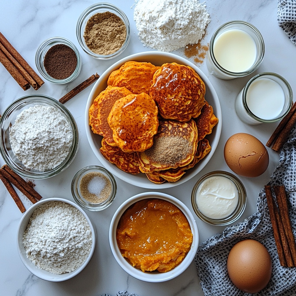 Getting started with the Pumpkin Cinnamon Roll Pancakes with Cream Cheese Glaze Recipe is a breeze thanks to its simple yet flavorful ingredients. Each one plays a key role in building the perfect texture, warmth, and richness that make these pancakes so memorable.