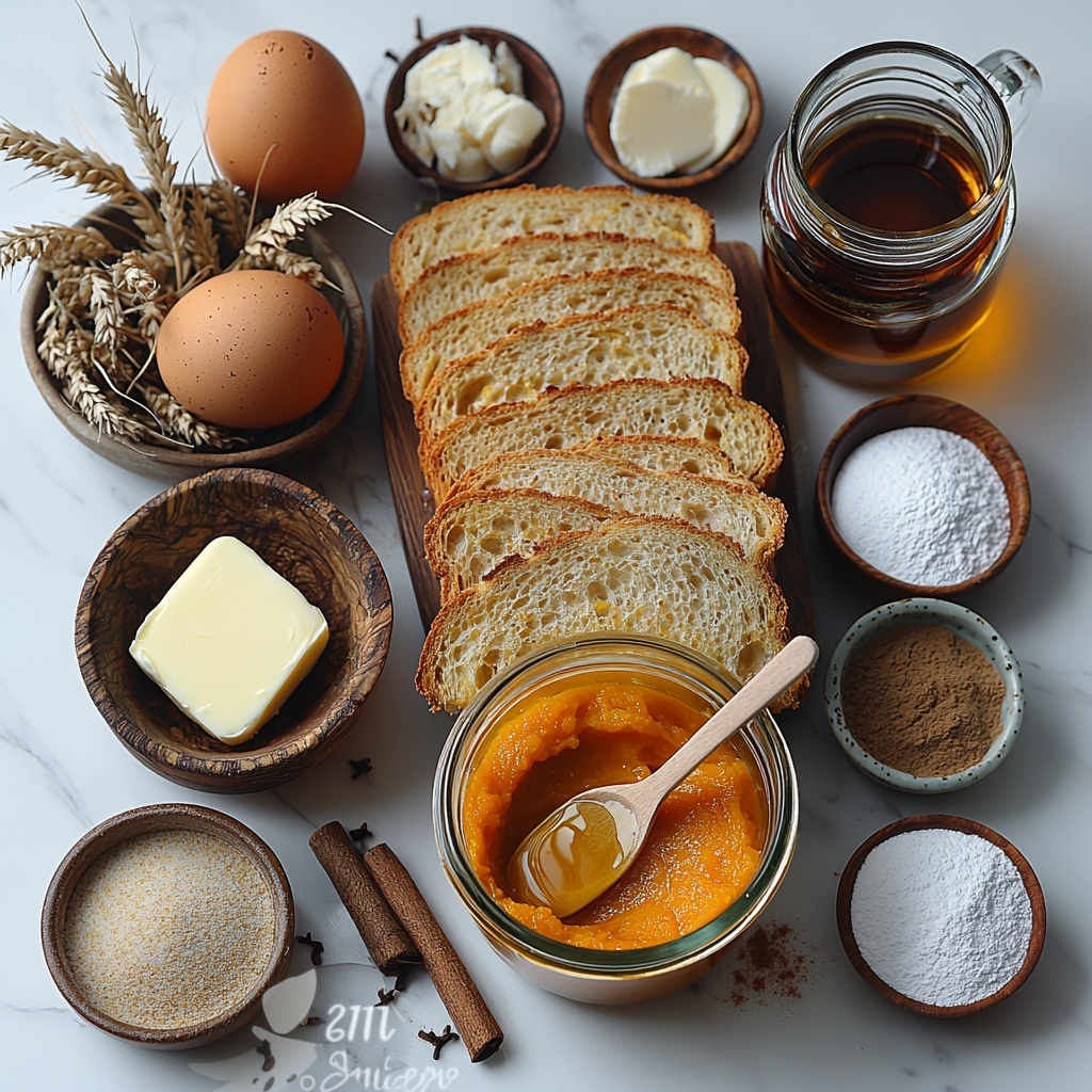The magic of this Pumpkin French Toast Recipe lies in its simplicity. Each ingredient plays a crucial role, from the creamy pumpkin puree that lends moisture and subtle sweetness, to the blend of spices that infuses every bite with that classic fall flavor profile. The thick bread ensures every slice holds up well, soaking in the custard without falling apart.