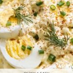 A quick and easy deviled egg salad recipe without potatoes or pasta, perfect for a light lunch or snack. Featuring boiled eggs mixed with mayonnaise, mustard, dill pickles, fresh herbs, and a tangy pickle juice, this salad is flavorful and satisfying in just 20 minutes.