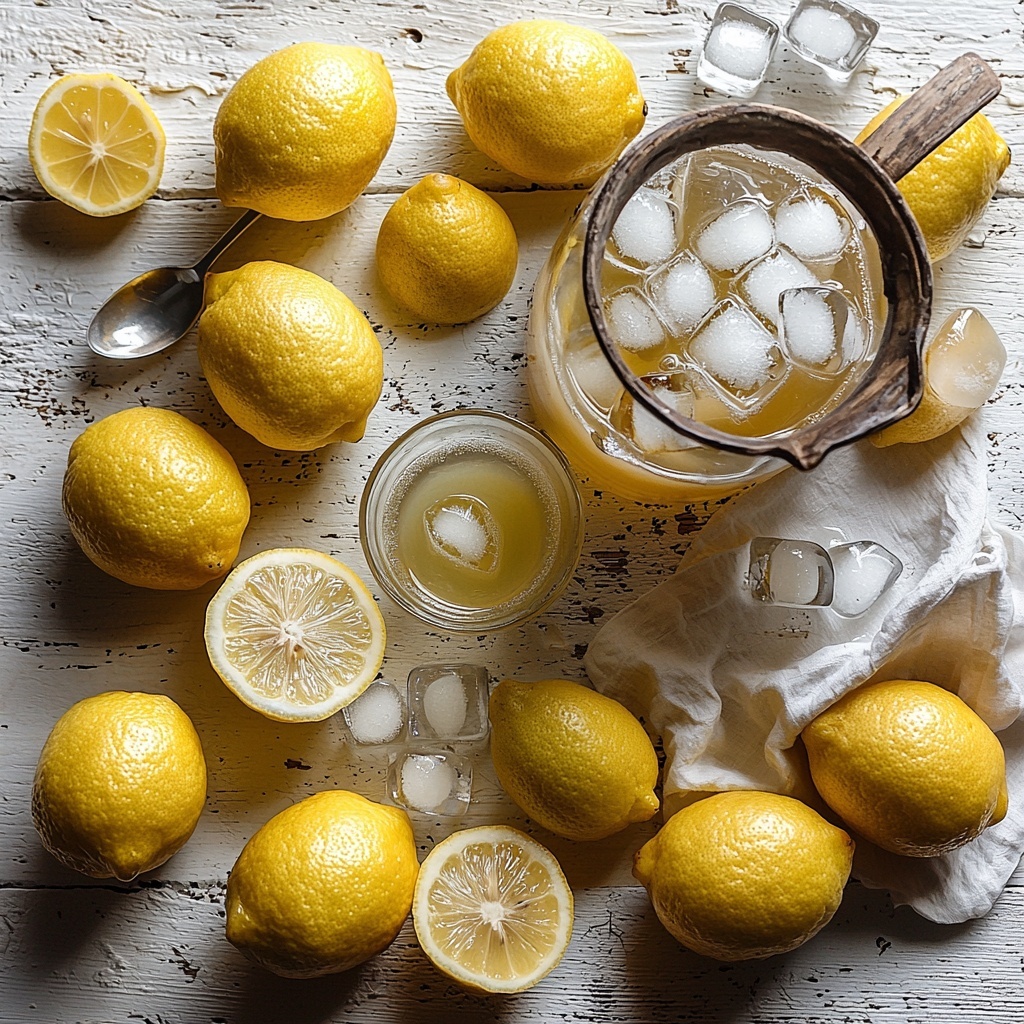 1. Combine Ingredients: In a large pitcher, add the ice, freshly squeezed lemon juice, simple syrup, and water. Stir the mixture thoroughly to ensure all ingredients are well incorporated and chilled.